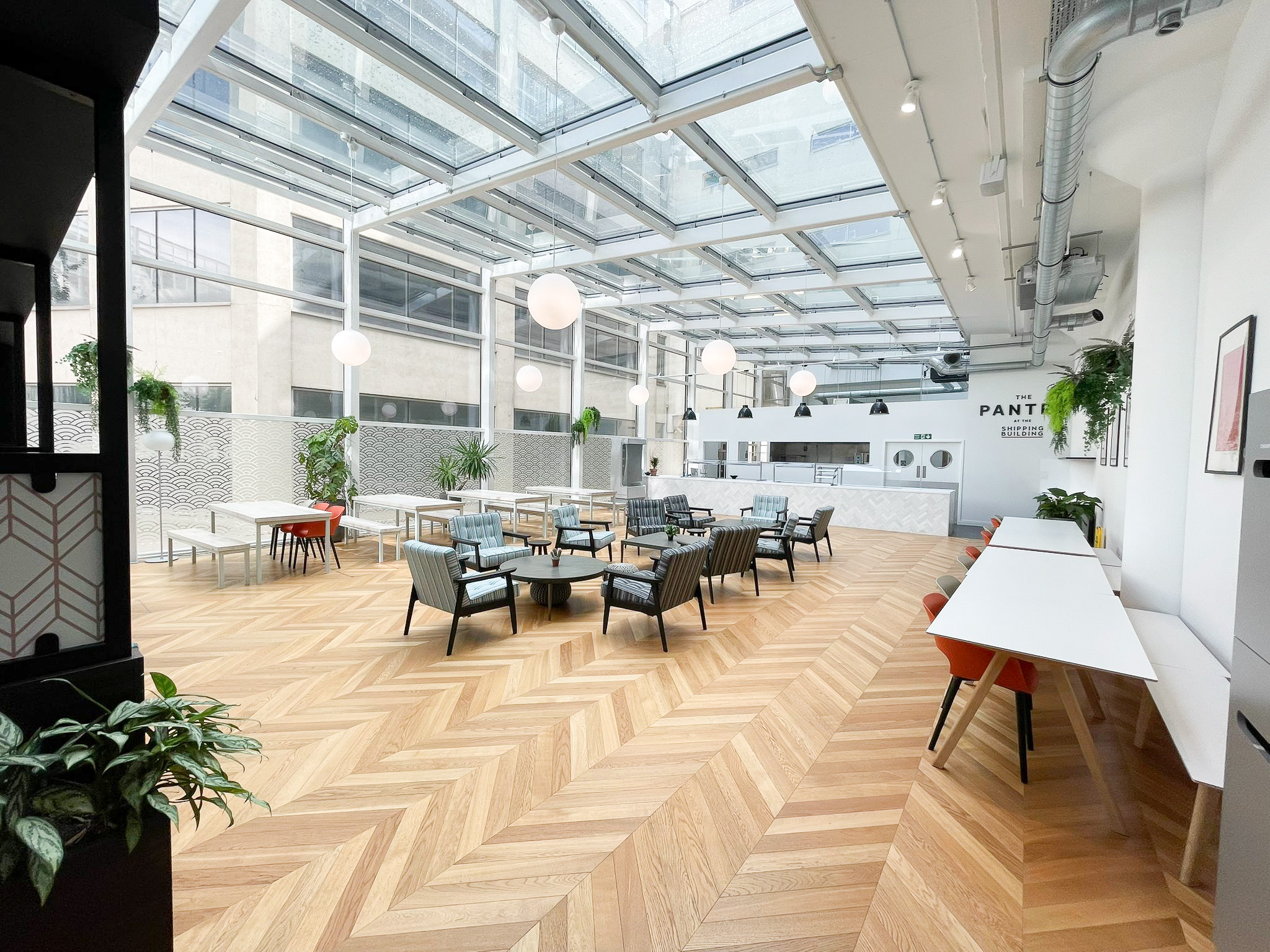 517 SQFT private first floor office space in Shipping Building, Hayes. Set within the landmark Old Vinyl Factory. This bright, flexible workspace is ideal for a creative studio or startup, with access to communal facilities including meeting rooms and breakout spaces. On-site amenities include a gym, café, and a vibrant mix of local restaurants and retail. Just a 5-minute walk from Hayes & Harlington Station with fast connections to Central London and Heathrow, Shipping Building is a popular choice for start-ups and expanding businesses.